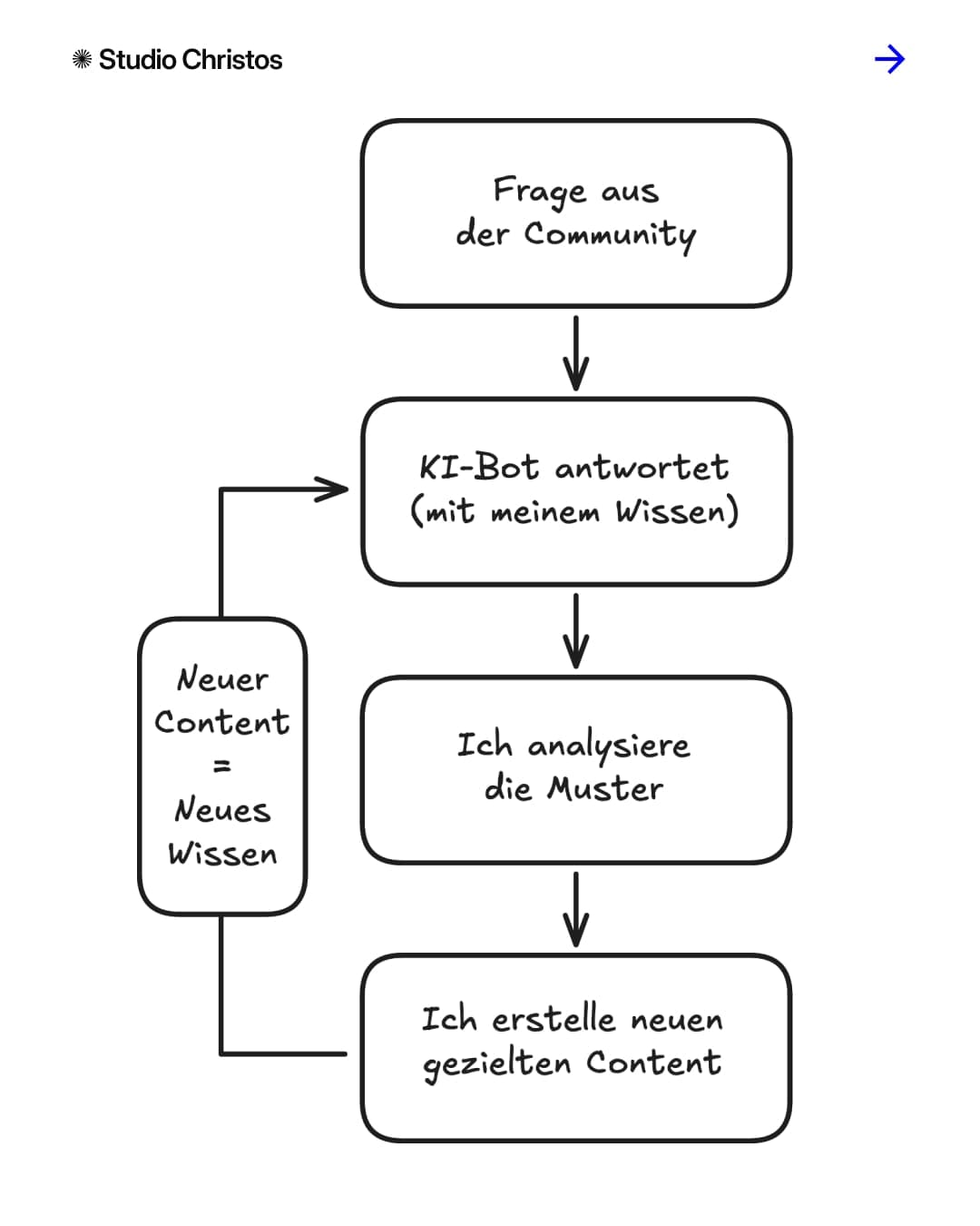 Daraus entsteht neuer Content. Videos, die genau die Fragen beantworten, die hundertmal gestellt wurden. Blog-Artikel, die tiefer gehen, wo der Chatbot an seine Grenzen kommt. Und dieser neue Content? Wird wieder ins System eingespeist. Ein Kreislauf.