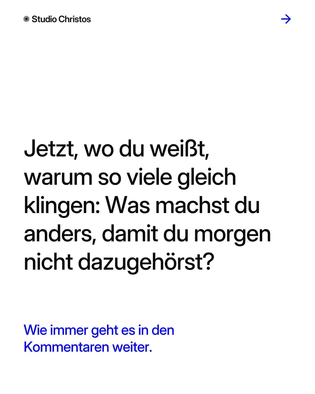 Von anderen lernen heißt nicht, andere zu werden. Es heißt: Prinzipien übernehmen, Stil selbst entwickeln. Die Klarheit kommt nicht durch Kopieren. Sie kommt durch Kontrast.