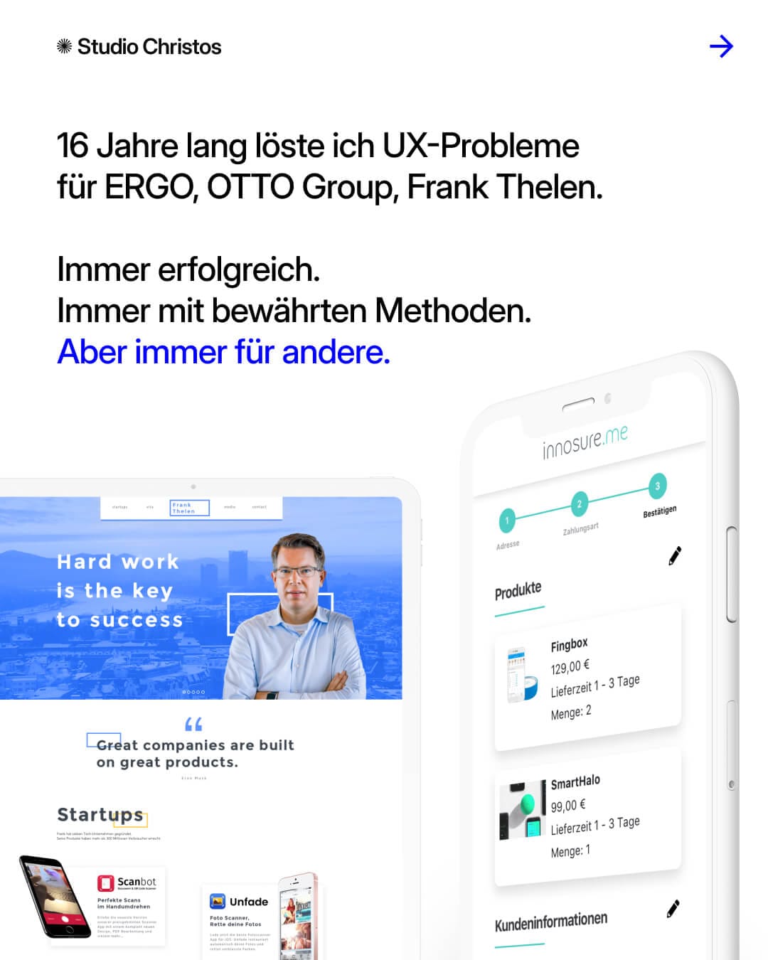 Nicht nur aus UX-Sicht, sondern als jemand, der selbst alle Phasen durchlebt hat. Das macht mich zu einem anderen Berater. Einem, der nicht nur weiß, wie es geht, sondern auch, wie es sich anfühlt.