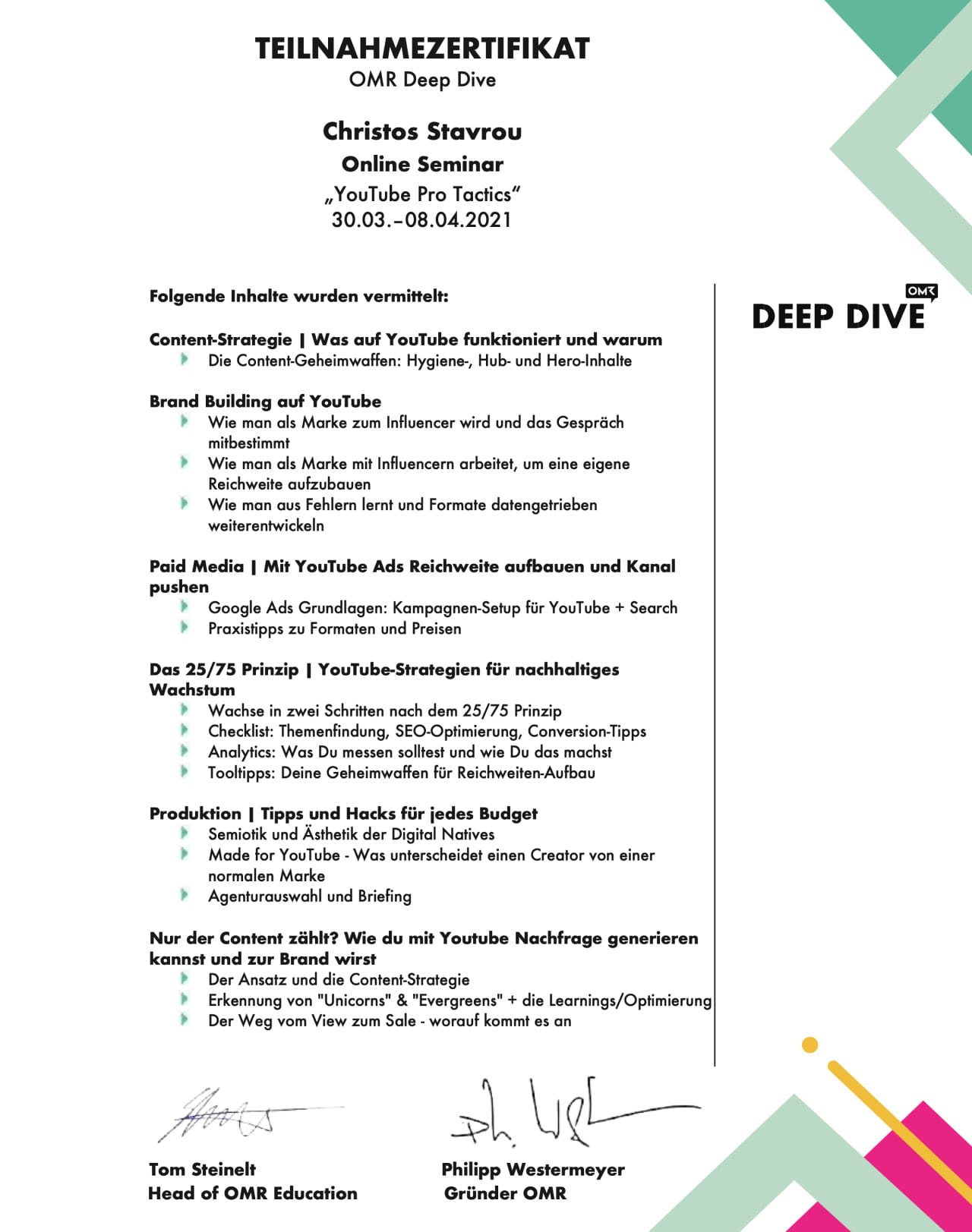 Zertifikat: YouTube Pro Tactics (Deep Dive)