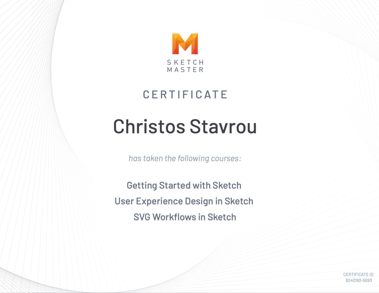 Zertifikat: Getting Started with Sketch · User Experience Design in Sketch · SVG Workflows in Sketch