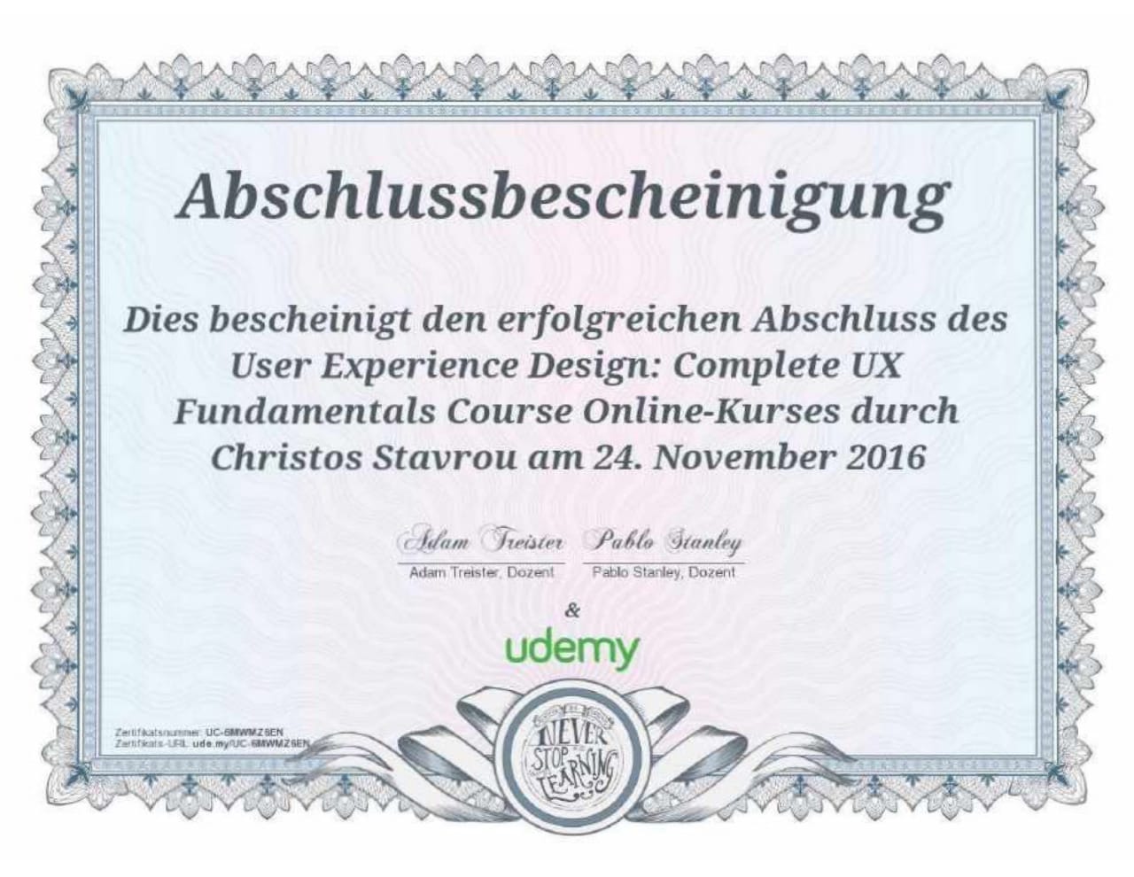 Zertifikat: User Experience Design: Complete UX Fundamentals Course